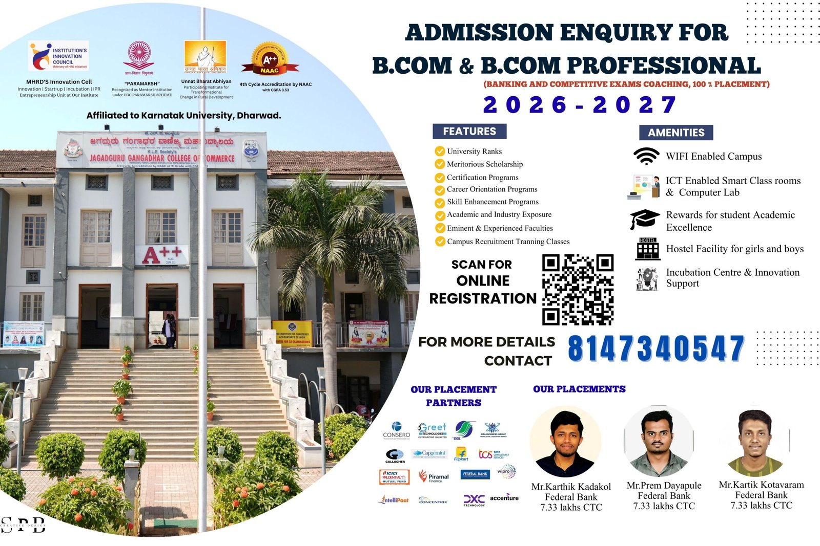 K.L.E Society’s J. G. College of Commerce, Youth Red Cross Wing in association with Hitaishi Foundation, Rotary Club of Hubli South and Leo Club of Hubballi organised a Blood Grouping & Blood Donation Camp on occasion of 75th Birthday of Dr. Prabhakar Kore, Chairman KLE Society on 01.08.2022.